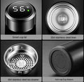 Description: A PP leak-proof elastomer ring has been incorporated into the lid of the LED Screen Tea Infuser Bottle. The vessel's intake is big and silky. It is also simple to clean and has an intake screen that eliminates contaminants.